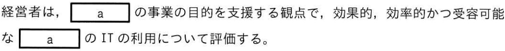 ITガバナンスに関する次の記述中のaに入れる字句として,最も適切なものはどれか。