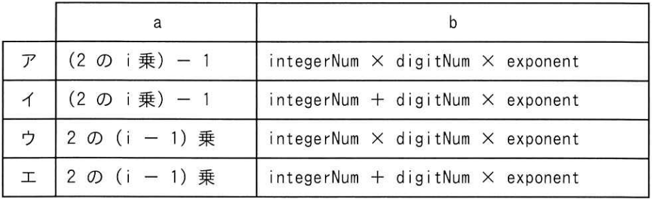 「a」が2i−1で末尾からi番目の桁の重みを正しく表します。「b」もintegerNum + digitNum×exponentで、各桁の寄与を加算して合計する処理になっており適切です。