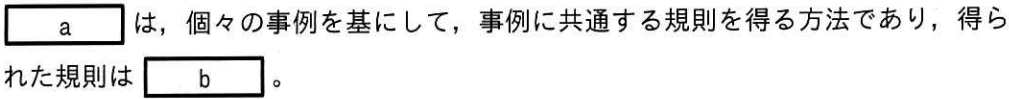 | aの候補 | 定義 | 問題文「個々の事例を基にして、共通する規則を得る」に合うか |