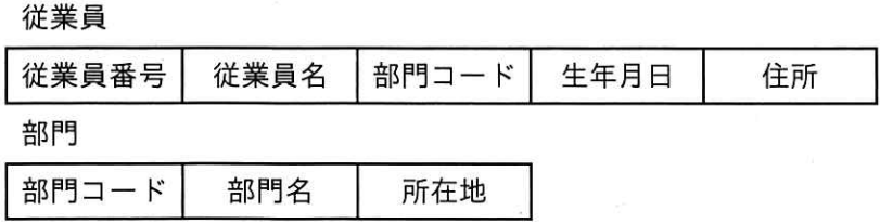 “従業員”表の列は「従業員番号」「従業員名」「部門コード」「生年月日」「住所」です。