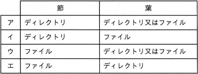 節がディレクトリ、葉がディレクトリ又はファイルとなるのは「ア」です。