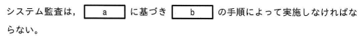 システム監査の手順に関して,次の記述中のa,bに入れる字句の適切な組合せはどれか。